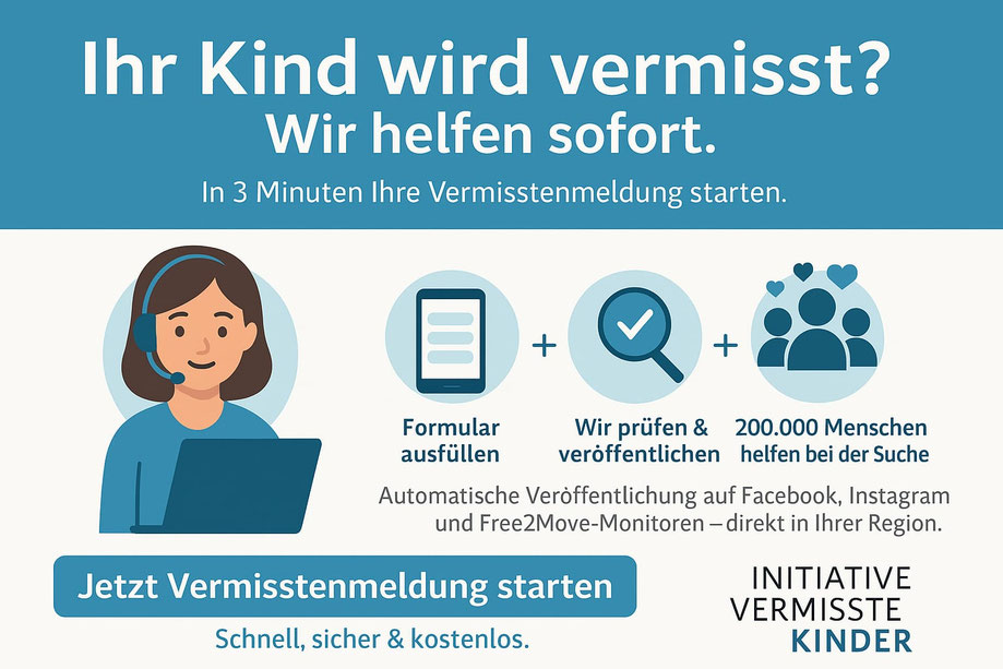 ➡️ Jetzt Vermisstenanzeige eingeben – jede Minute zählt.